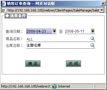 1、從菜單中選中“倉(cāng)庫(kù)銷售分布”項(xiàng),系統(tǒng)自動(dòng)彈出查詢條件設(shè)置界面